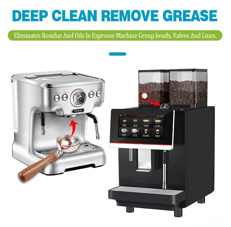 Safety and Compliance: Trust in our products, which are NSF Certified and REACH Certified for your peace of mind. With a strong decontamination power, our concentrated formula eradicates coffee residue and oil efficiently from group heads, valves, and lines.